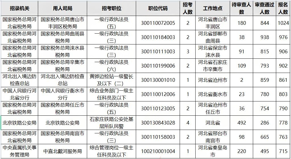 截止到23日16时,工作地点在河北的职位共有2个无人报考