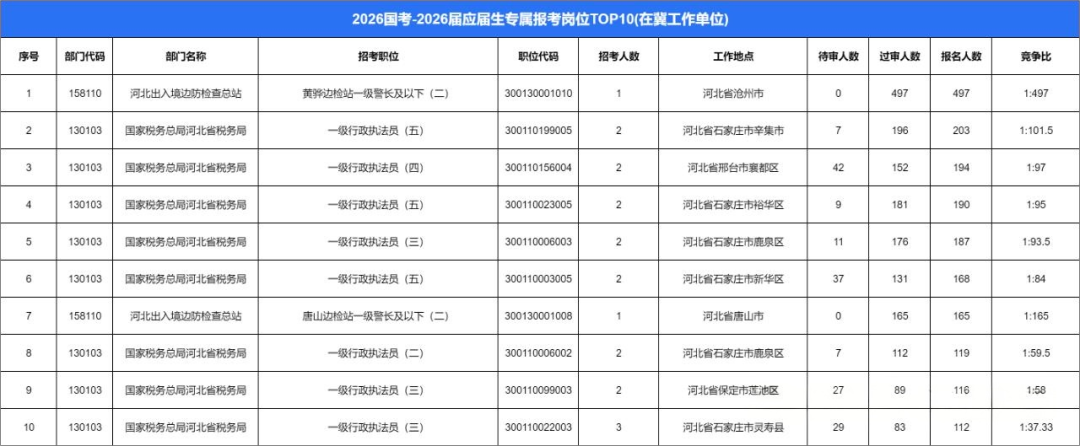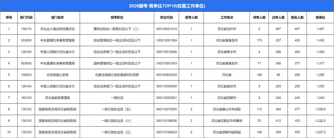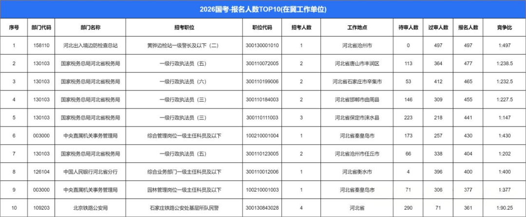国考报名第六天数据来啦!河北地区报名超4.5w人!