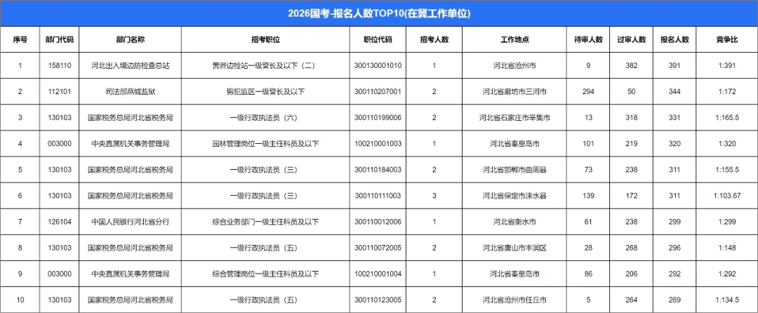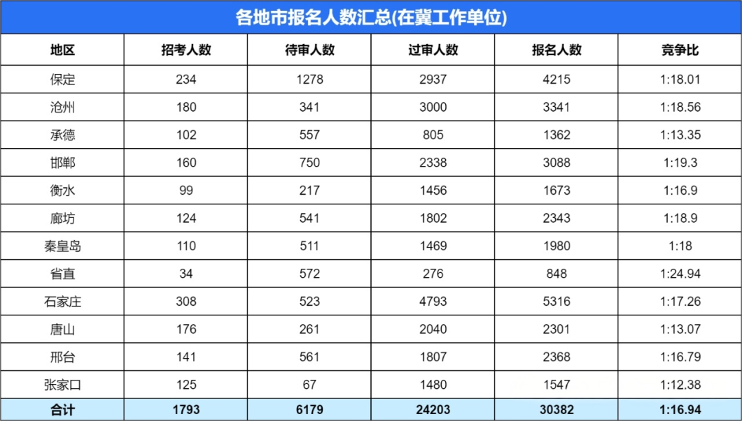 招录人数*少的地区则是衡水市(不含省直),仅招考99人。