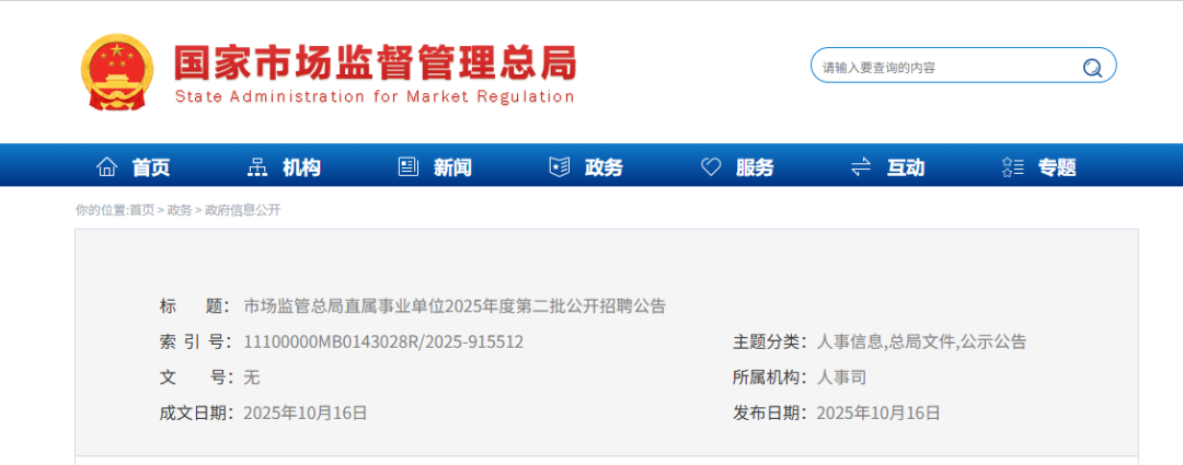 2025年国家市场监督管理总局直属事业单位第二批公开招聘公告
