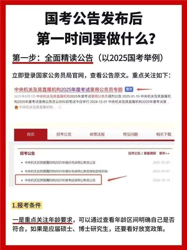 在中央机关及其直属机构2025年度考试录用公务员专题网站,目前还是显示2025年度,公告将近发布的时候会清空页面,更新为2026年度。此页面包括公告原文、报考指南、调剂安排、补充录用、岗位表、进面名单等等。