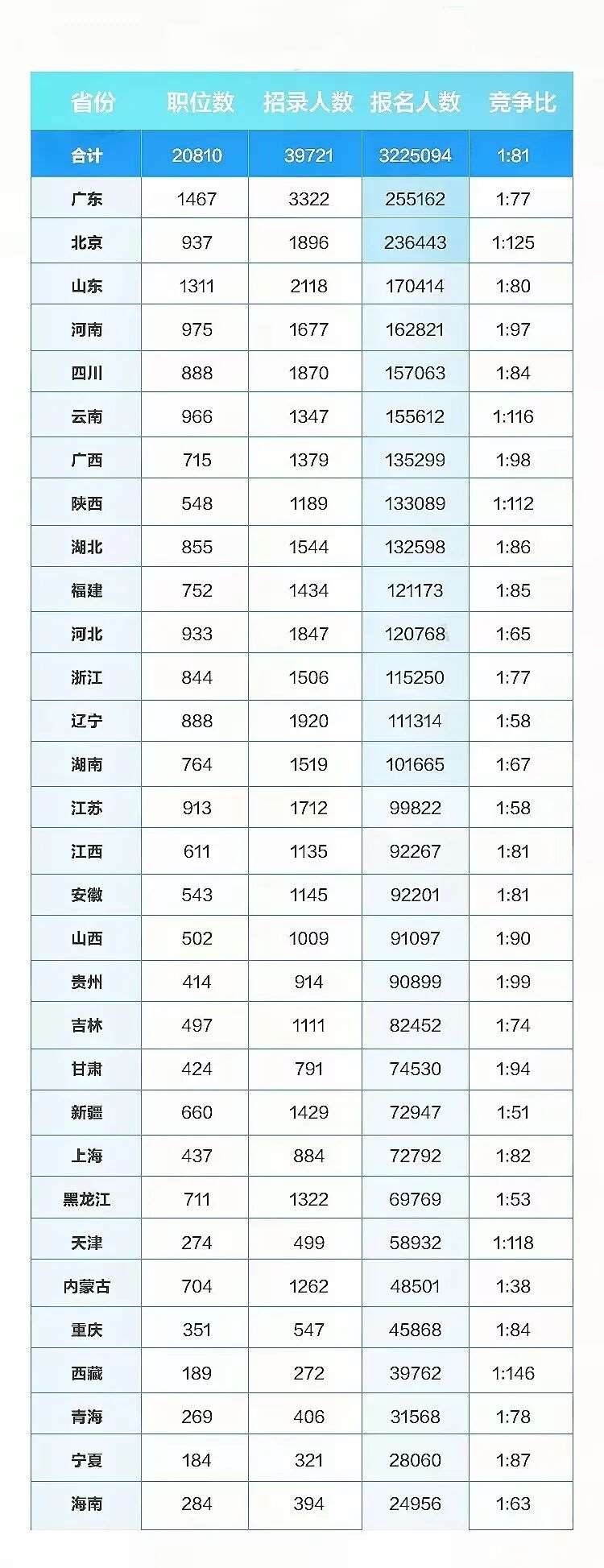 2025年国考的各省具体的招录情况、报考人数、竞争比以及进面分数情况统计: