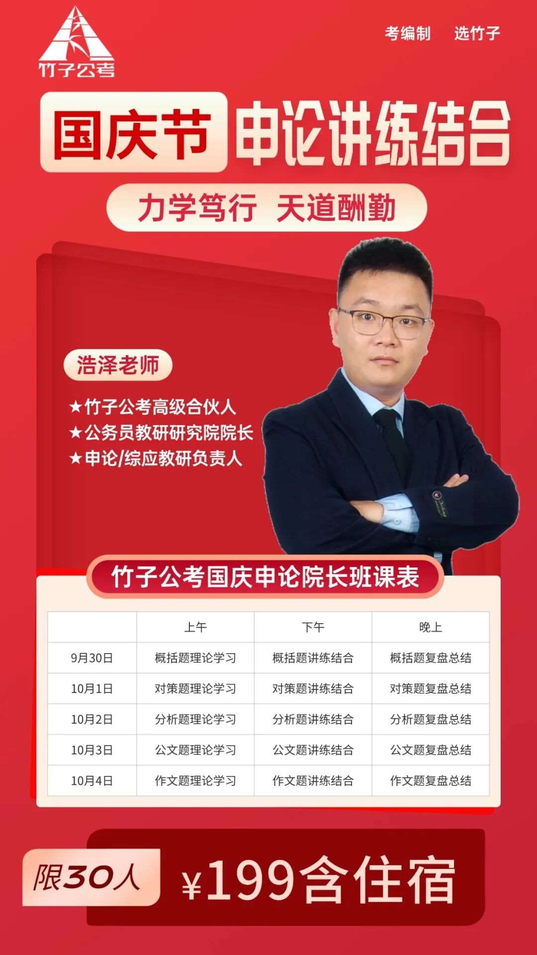 仅需199元(含住宿)国庆期间公考课!