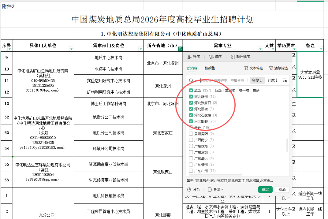 2.报名方式:有意应聘者请将《中国煤炭地质总局高校毕业生应聘简历》(附件1),自荐书,学校就业推荐表(扫描件,学校尚未下发可省略),在校期间学习*单(扫描件),各类获奖证书、资格证书(扫描件)及其他应聘材料(研究生学历人员请提供本科期间的证书和在校期间学习*单)以压缩文件的形式发送至《中国煤炭地质总局2026年度高校毕业生招聘计划》(附件2)中具体用人单位的电子信箱,文件名称请务必使用“具体用人单位+需求部门及岗位+学校+专业+学历+姓名”的格式。