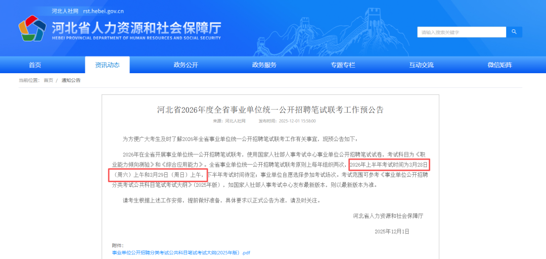为方便广大考生及时了解2026年全省事业单位统一公开招聘笔试联考工作有关事宜,现预公告如下: